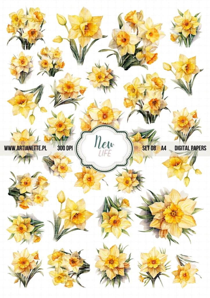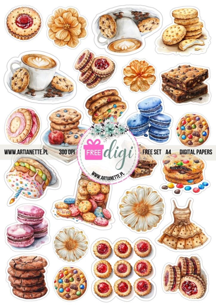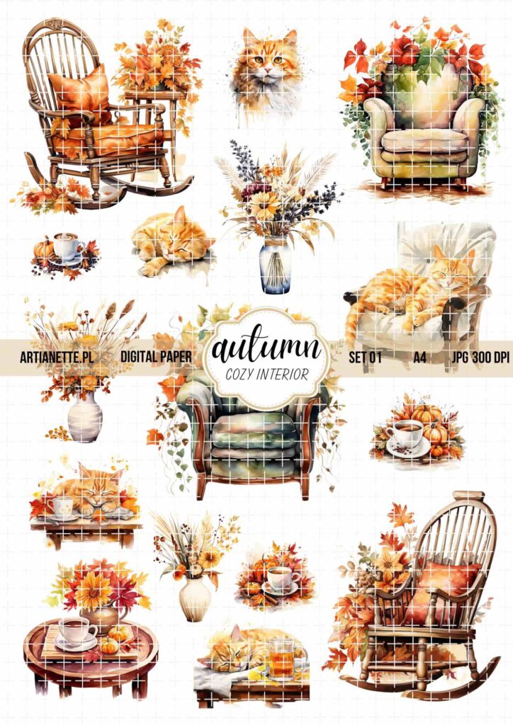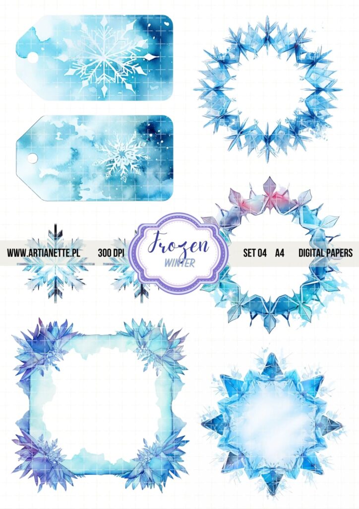 Kolejne elementy to grafiki tematyczne– na przykład zimowe domki i płatki śniegu w styczniu, kwiaty w maju, liście w październiku.