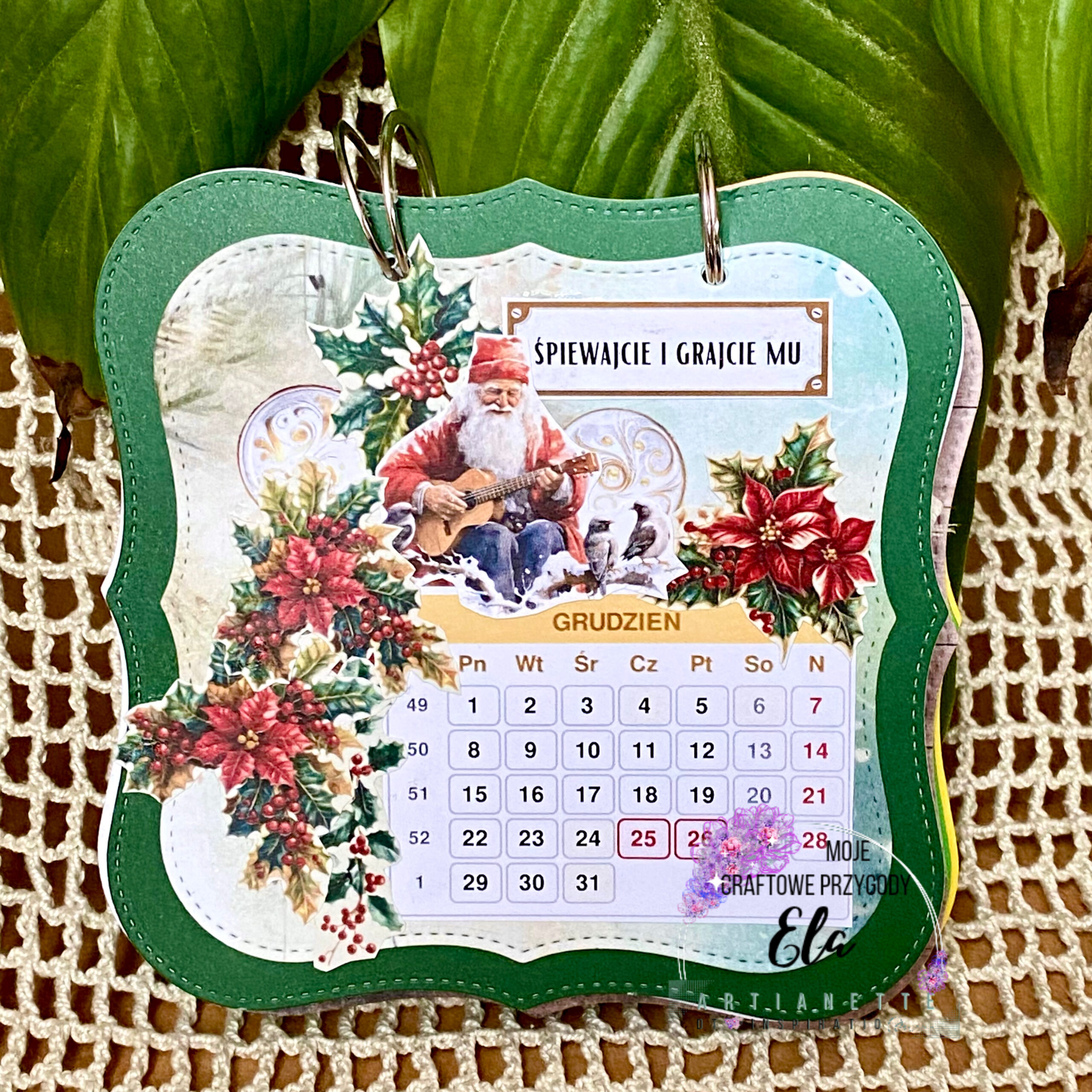 Stary rok chciałam pożegnać przeglądem kolekcji Artianette, które towarzyszyły mi przez cały rok. W ten sposób powstał pomysł na wykonanie kieszonkowego kalendarza w technice scrapbookingu na rok 2025. Na pewno z takim kalendarzem miło jest powitać nowy rok. Miło będzie pewnie także zaglądać do niego w ciągu roku. Jest to zatem uroczy drobiazg, który znalazł swoje stałe miejsce na moim biurku. Przedstawiam Wam poniżej kalendarz na 2025.
