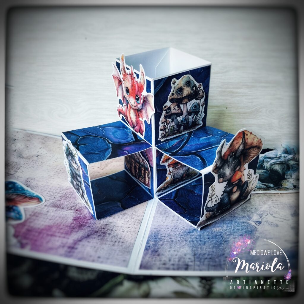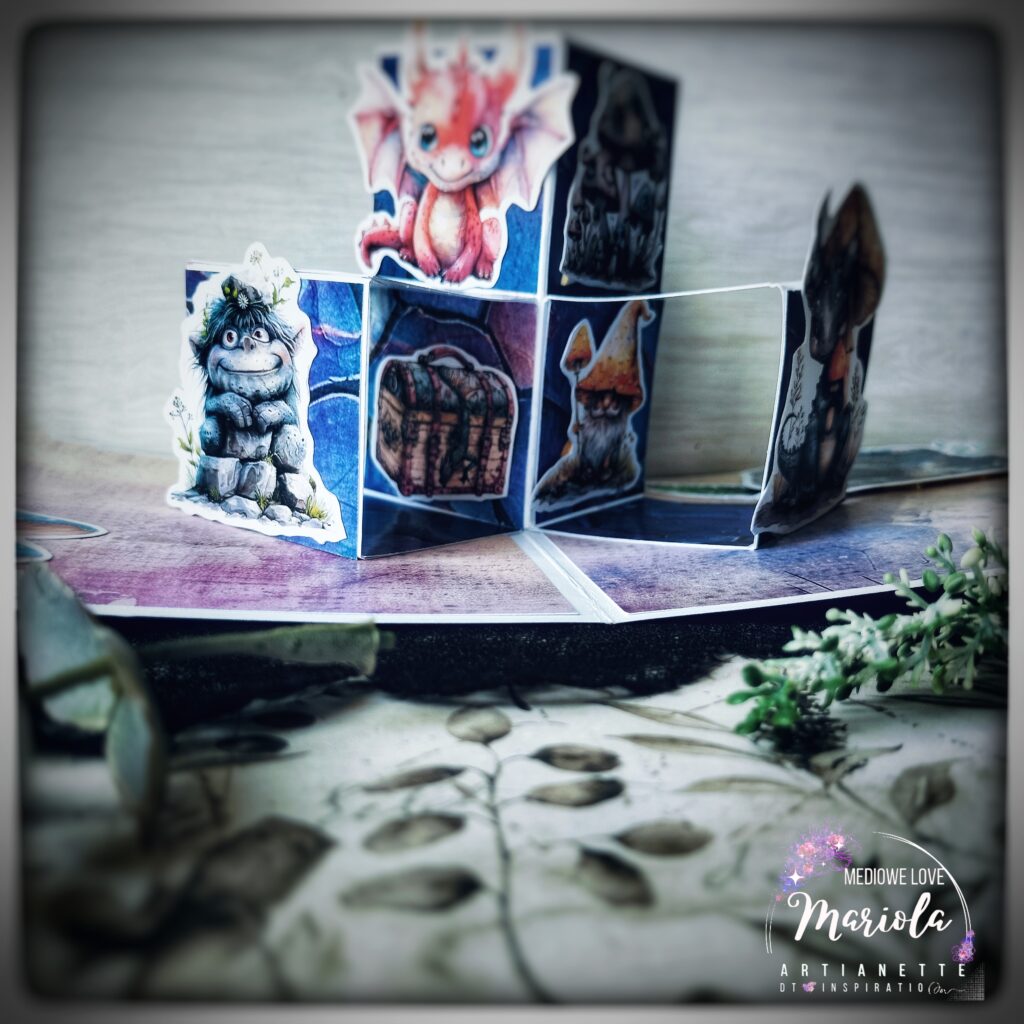 Bajkowe elementy, czyli smoki, trolle i skrzaty w kartce pop-up triple cubes