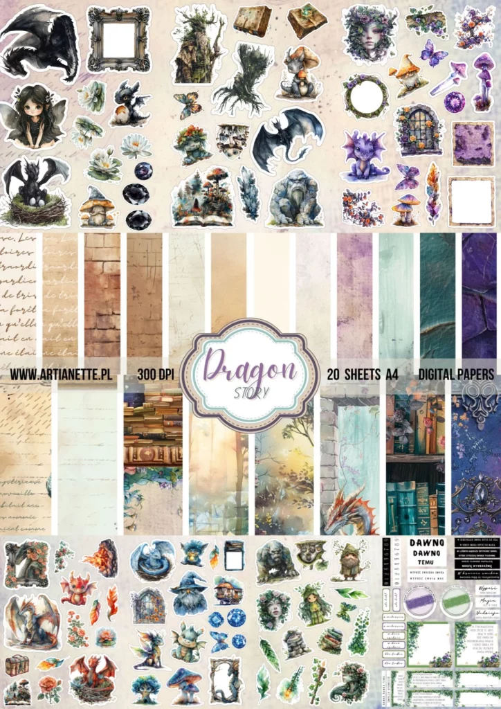 Papiery digital z kolekcji dragon story w kartce pop-up triple cubes