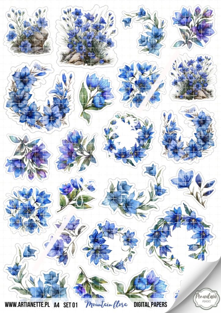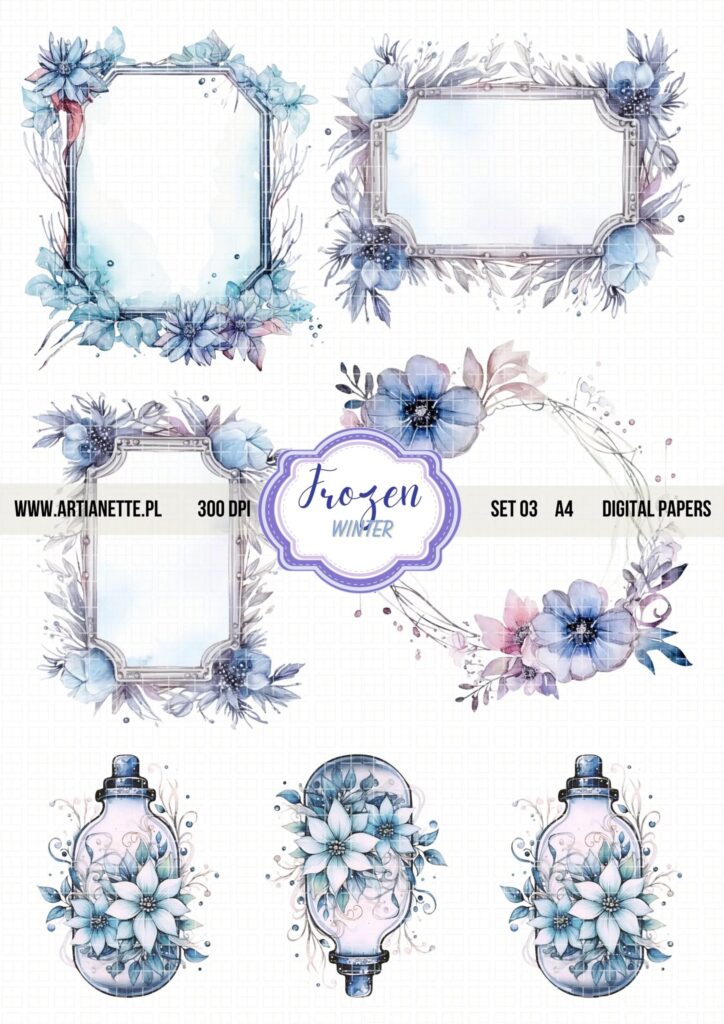 Przepiękny digi stempelek, pomalowałam kredkami akwarelowymi a następnie umieściłam w otoczeniu zimowych kwiatów i śniegu. Kolorystyka jest tutaj iście zimowa: biel i głęboki błękit. W tle zaś pojawiają się czerwone kwiatowe akcenty.