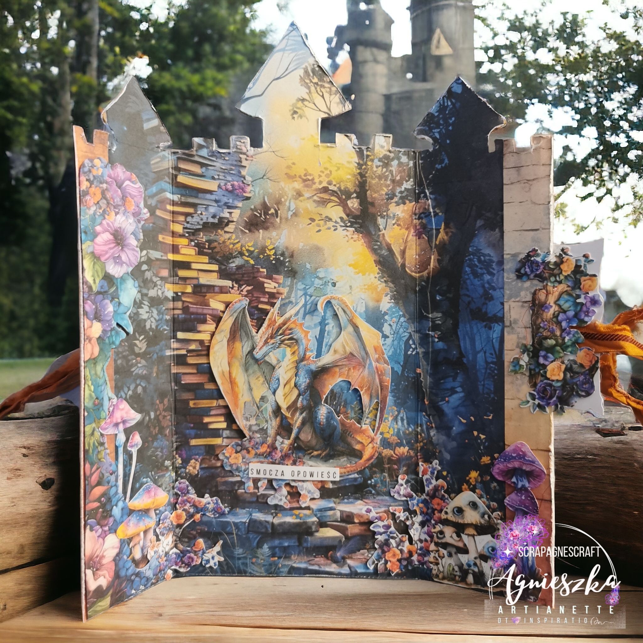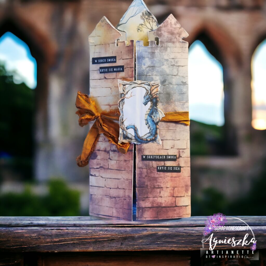 Zapraszam do magicznej krainy, gdzie smoki i czary są na porządku dziennym, ponieważ stworzyłam magiczną kartkę, która przeniesie do tego niezwykłego świata. Ten zamek jest zatem efekt kilku godzin twórczej pracy i radości, która mi towarzyszyła podczas tworzenia. Jest pełna detali, które niczym klucz otworzą drzwi do wyobraźni, a ponadto przeniosą do krainy fantazji.