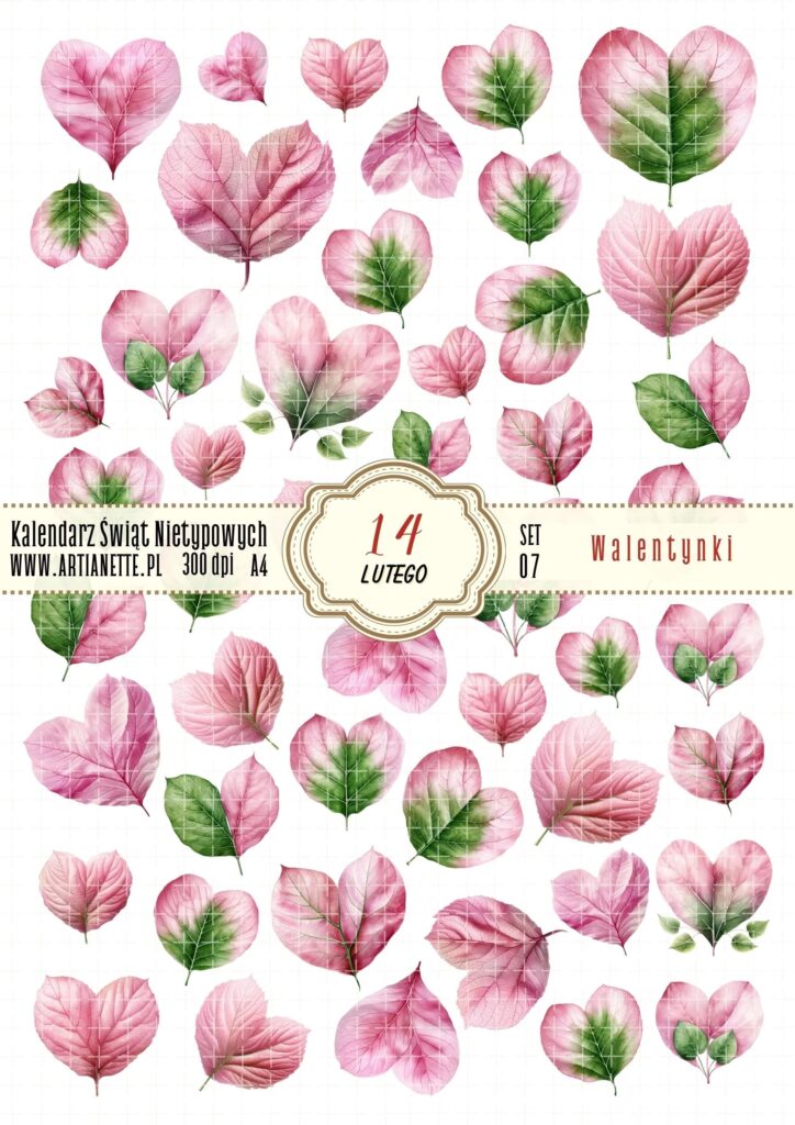 Całość przyozdobiona jest drobnym, różowym, transparentnym brokatem, który połyskuje delikatnie, gdy pada na niego światło, tworząc magiczny, świąteczny efekt. Co ciekawe, pudełka zyskują też lekko wiosenny charakter dzięki delikatnym grafikom kwiatów wiśni, które przeplatają się z zimowymi elementami, tworząc niebanalną i unikalną kompozycję. W całej kompozycji pojawiają się także akcenty jasnej, wiosennej zieleni. Wdzięcznym elementem są także szklane, żółte serduszka.