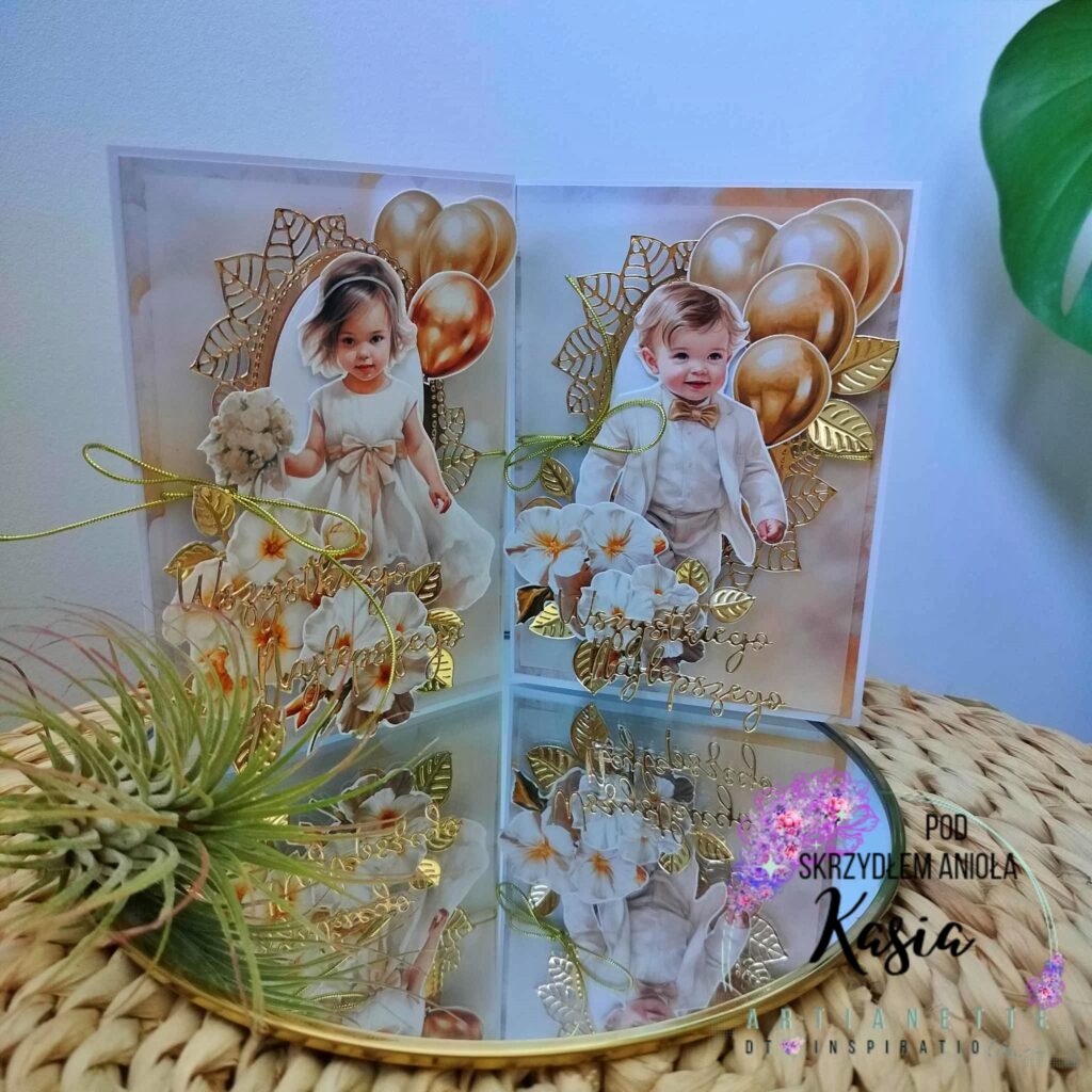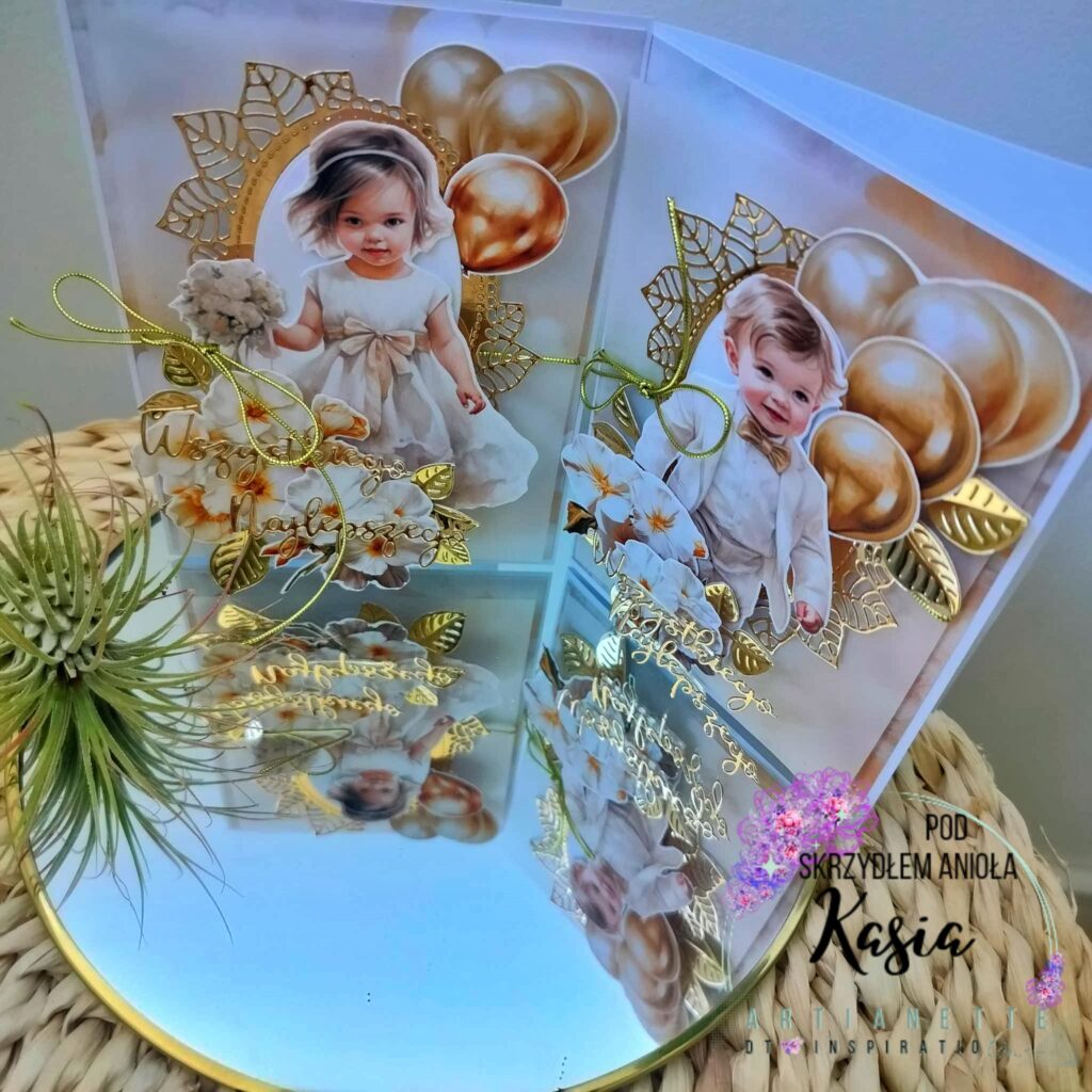 Każdą kartkę ozdobiłam złotym napisem „Wszystkiego najlepszego”. Ten prosty, ale znaczący detal podkreśla radosny charakter kartek i dodaje im uroku. Złota, koronkowa ramka, którą dodałam, dopełnia całości, nadając projektom elegancji i delikatności. Tworzenie tych kartek było dla mnie ogromną radością. Chciałam, aby każde urodzinowe kartki dla dzieci były piękne, wyjątkowe i pełne miłości. Te kartki to wyraz mojej pasji do tworzenia i pragnienia, aby przynosiły radość najmłodszym w ich wyjątkowym dniu.