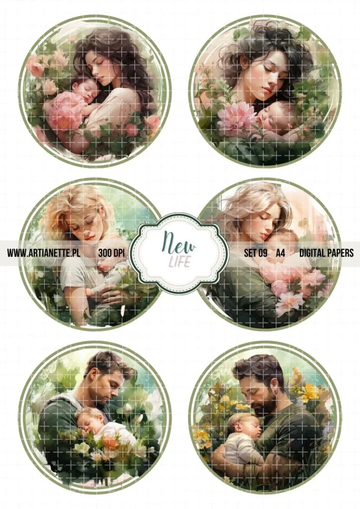 Zachwyciła mnie zielona kolorystyka kolekcji Artianette New Life. Przepiękny widok faceta kołyszącego niemowlę w ramionach wzrusza serce. Ten obraz miłości ojca do dziecka zainspirował mnie do stworzenia odpowiedniej oprawy. Akwarelowa, delikatna stylistyka grafiki podkreśla przesłanie miłości. Rozmyte tło i jasna, prześwietlona biel emanują ciepłem i oddaniem. Ta grafika jest pełna światła. Nie mogłam obok niej przejść obojętnie, gdyż jest wyjątkowo wzruszająca. Ponieważ lubię delikatne grafiki, dlatego wybrałam tę.